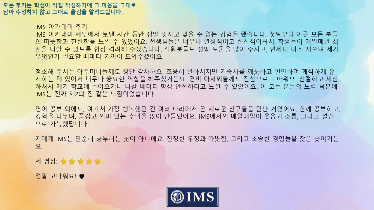 별점5점의 IMS를 떠나며 12주 Premium ESL